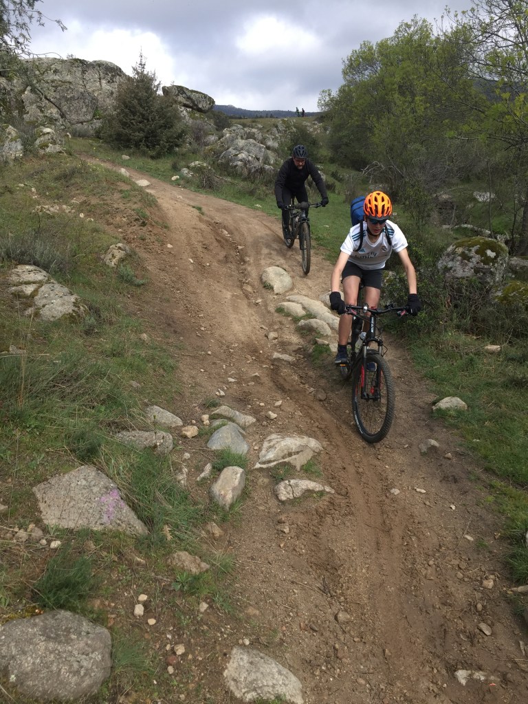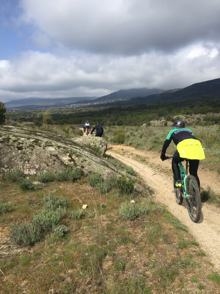 Después de esta primera bajada técnica pusimos dirección Navalafuente, donde hicimos una parada técnica para tomar fuerzas antes de subir por el camino de arreturas, que de nuevo, se iría convirtiendo de pista en camino para terminar en la segunda bajada por un sendero que desafiaba a las dos ruedas.