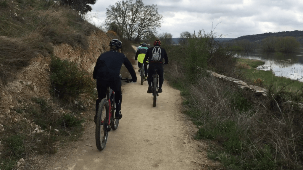 La primera parte de la ruta ascendía por las poblaciones de Venturada y Cabanillas, donde el terreno empezó a cambiar, en un camino que se estrechaba para empezar a bajar por una divertida senda, en la que algunos tramos se presentaba embarrada.