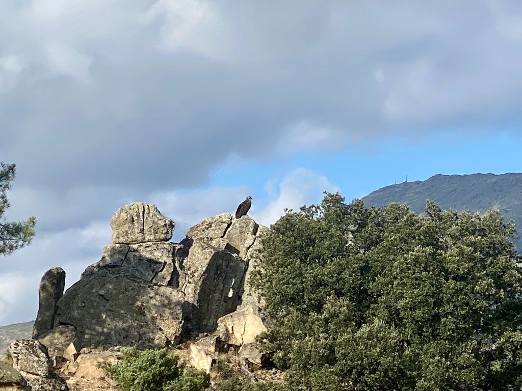La ruta de adultos tuvo momentos duros y divertidos para todos los participantes, con una fuerte subida hasta el medio Celemín por la cara norte de la sierra de la Cabrera, donde en una de las paradas, pudimos contemplar un majestuoso buitre leonado desde muy cerca.