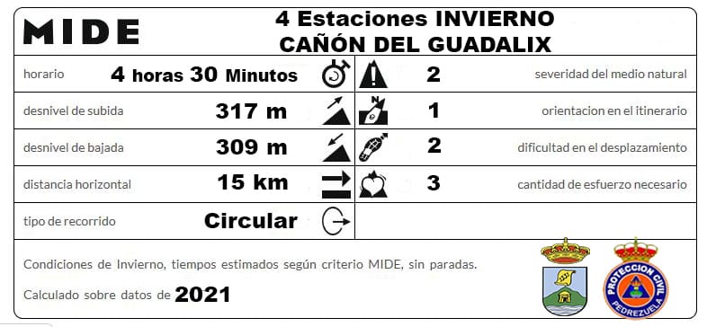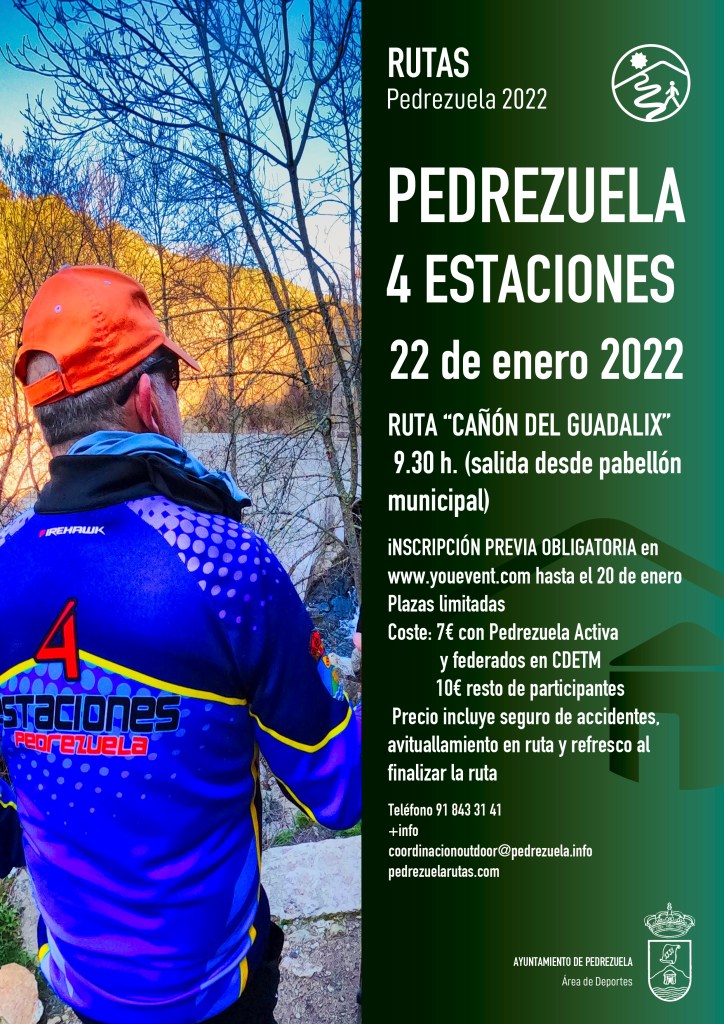 Desde la Atalaya del Molar continuaremos por una senda que baja a enlazar con la vía pecuaria que es limítrofe de los municipios de El Molar y Pedrezuela, siguiendo esta vía rumbo norte, llegamos a Pedrezuela y, transitando por su casco urbano, llegaremos al Quiosco del Polideportivo, punto final de la ruta. La hora prevista de llegada serían las 14:00 hrs, siendo la duración total de la ruta, incluidas las paradas unas 4 horas y media.